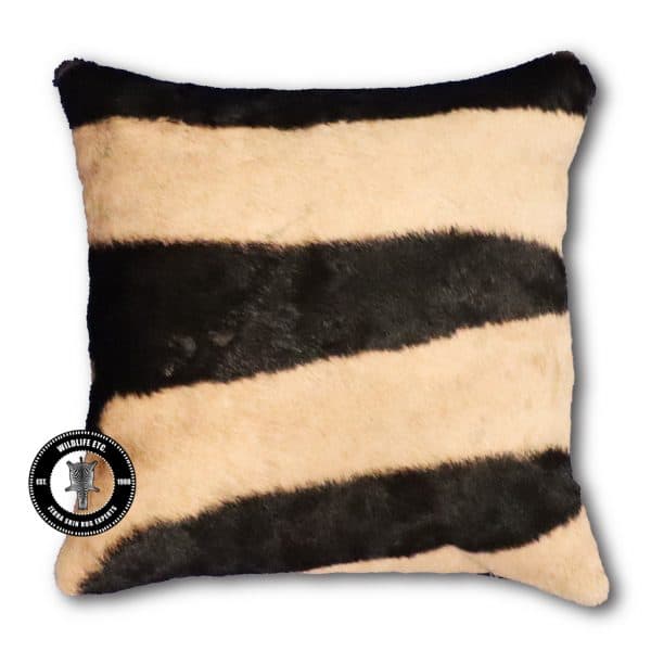 Wildlife Etc LLC custom manufactures our own Real Zebra Skin Hide Pillows with a focus on quality.  The attention to detail of this pillow shows the quality workmanship we put into our professional pillow work.  All work is done on-site at Wildlife Etc LLC by our skilled team located in the United States of America about a mile away from Houston, Texas. Our manufacturing team is led by our in-house expert who is a professionally trained sewing expert with many years of experience. We use state-of-the-art professional commercial sewing equipment in the manufacturing process. We believe that our Real Zebra Skin Pillows are of the highest quality game skin pillows and leather offered in the Market. The finish work includes a hidden zipper which takes our zebra pillows to the next level of  quality.  Our zebra skins pillows are made from culled zebra skins from the Burchell’s subspecies of zebra. We are confident that your selection will add many years of enjoyment and interest in your home, office, Trophy Room, or wherever you choose to use your piece of Africa. Our Zebra Skin Hide Pillows also make great gifts for family, friends, and business contacts. Thank you for shopping with Wildlife Etc LLC at zebrarug.com.
